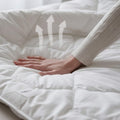 Vlákna sa pri vyššej teplote jemne otvoria a prepúšťajú nadbytočné teplo. Keď je chladno, zatvoria sa a udržia ho pri tele — vďaka tomu vám pod prikrývkou nikdy nie je ani príliš teplo, ani príliš chladno.